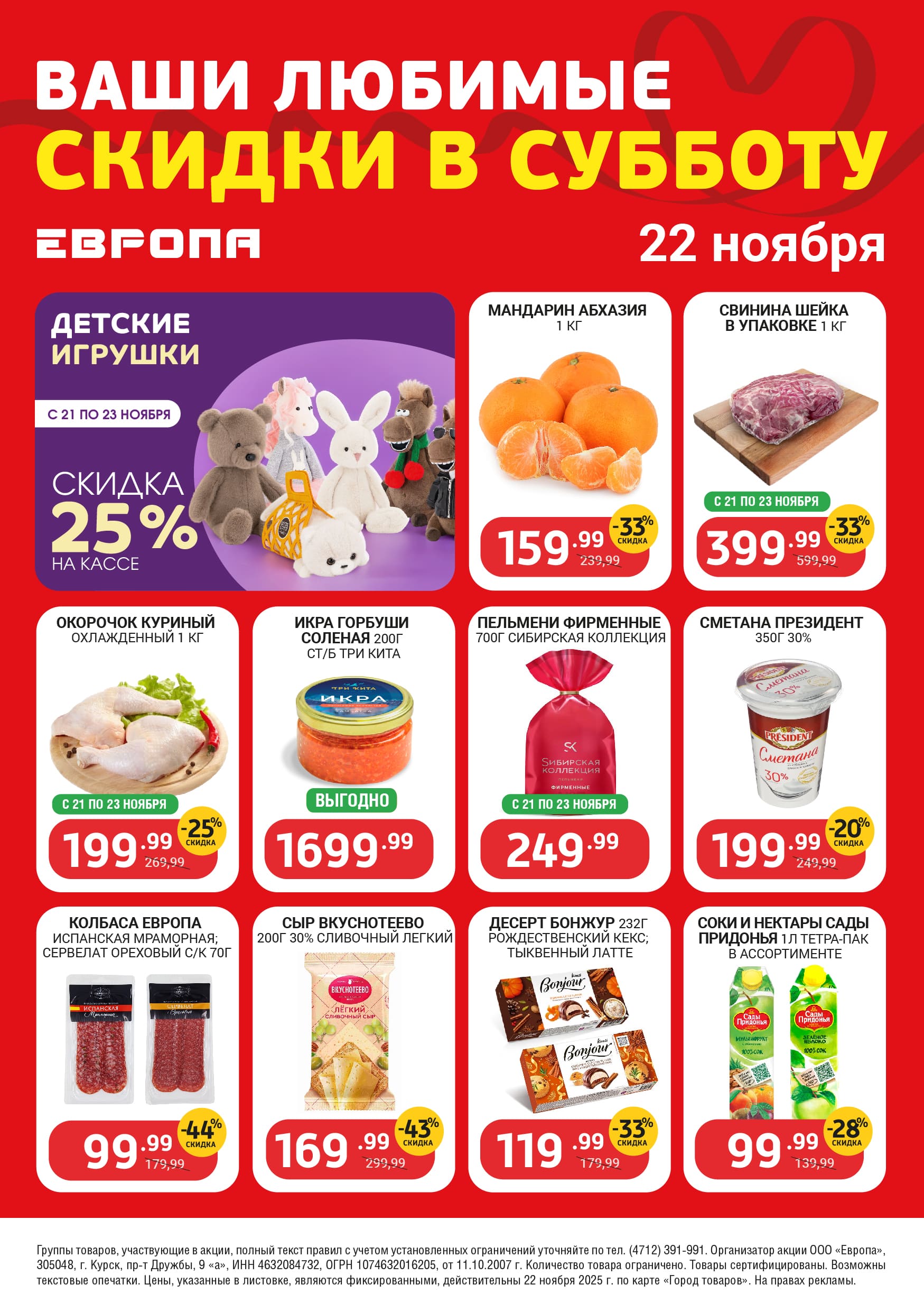 Ваши любимые скидки в субботу 22 Ноября 2025г.