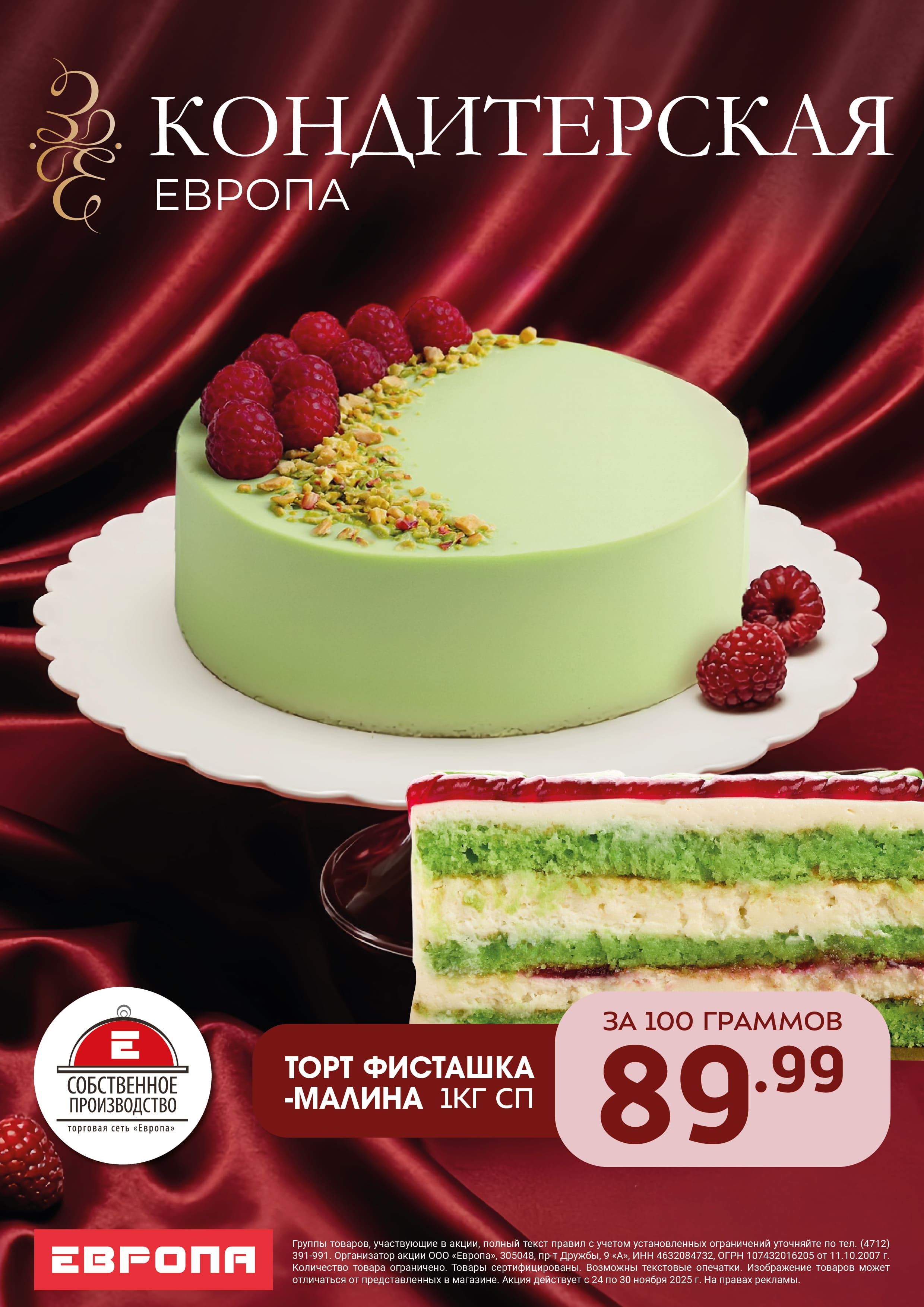 Торт фисташка-малина с 24 по 30 Ноября 2025г.