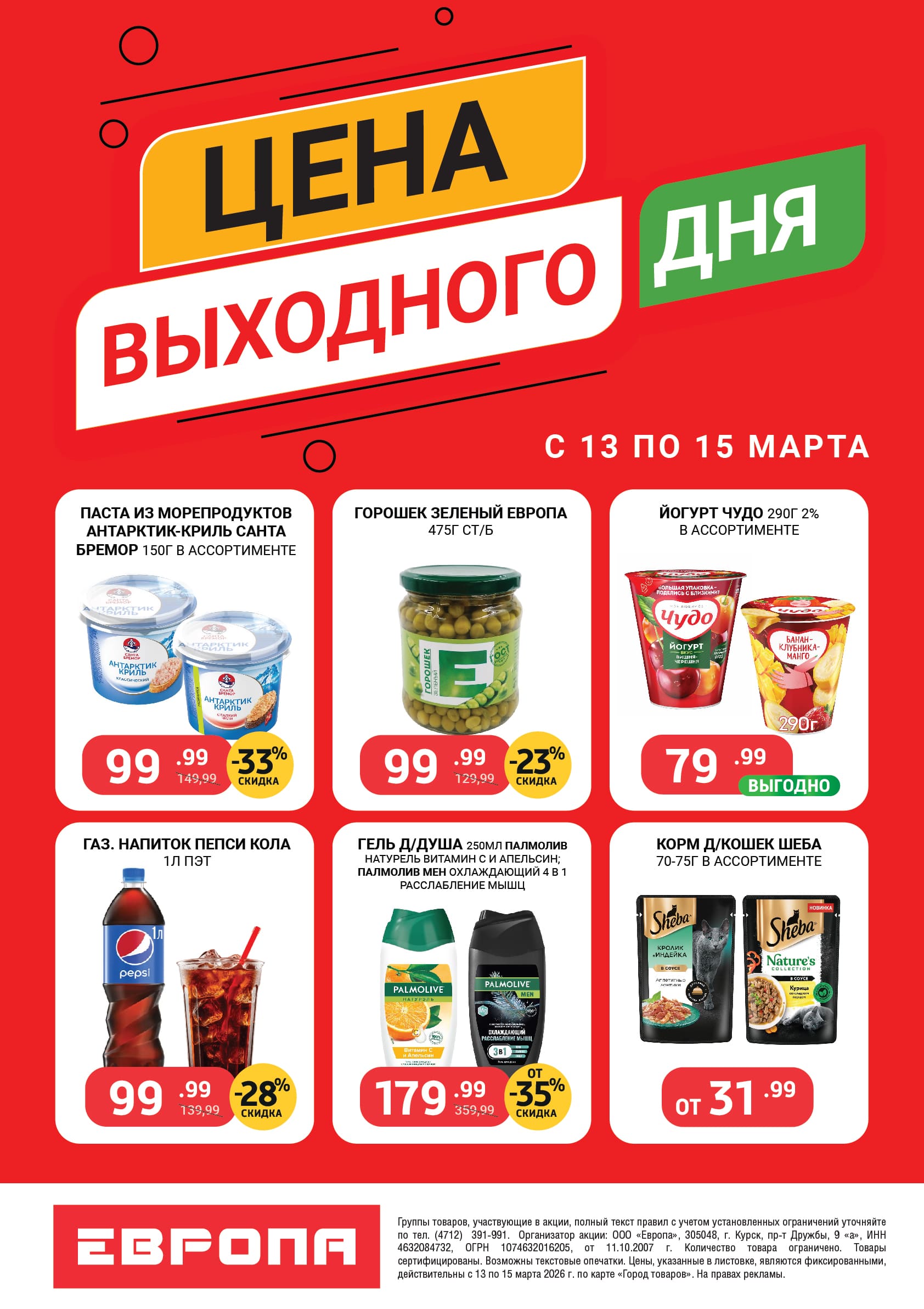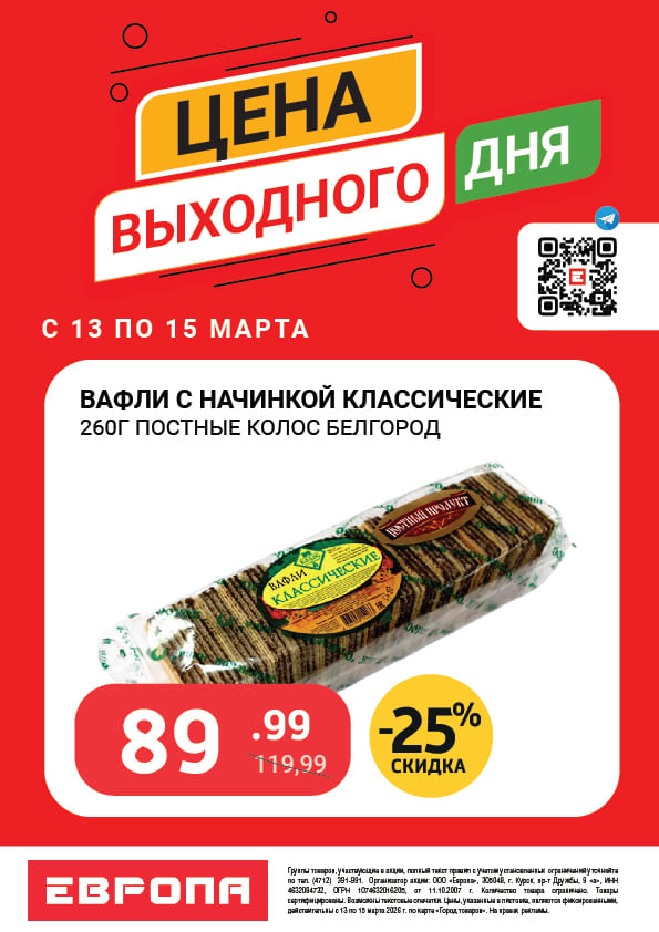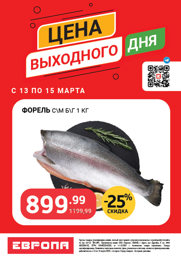 Цена выходного дня с 13 по 15 Марта 2026г.