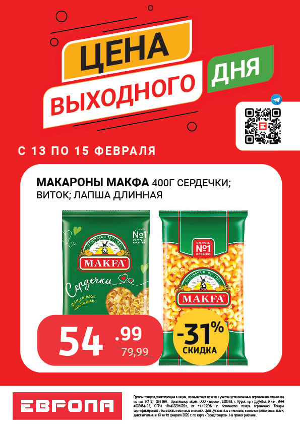 Цены выходного дня с 13 по 15 Февраля 2026г.