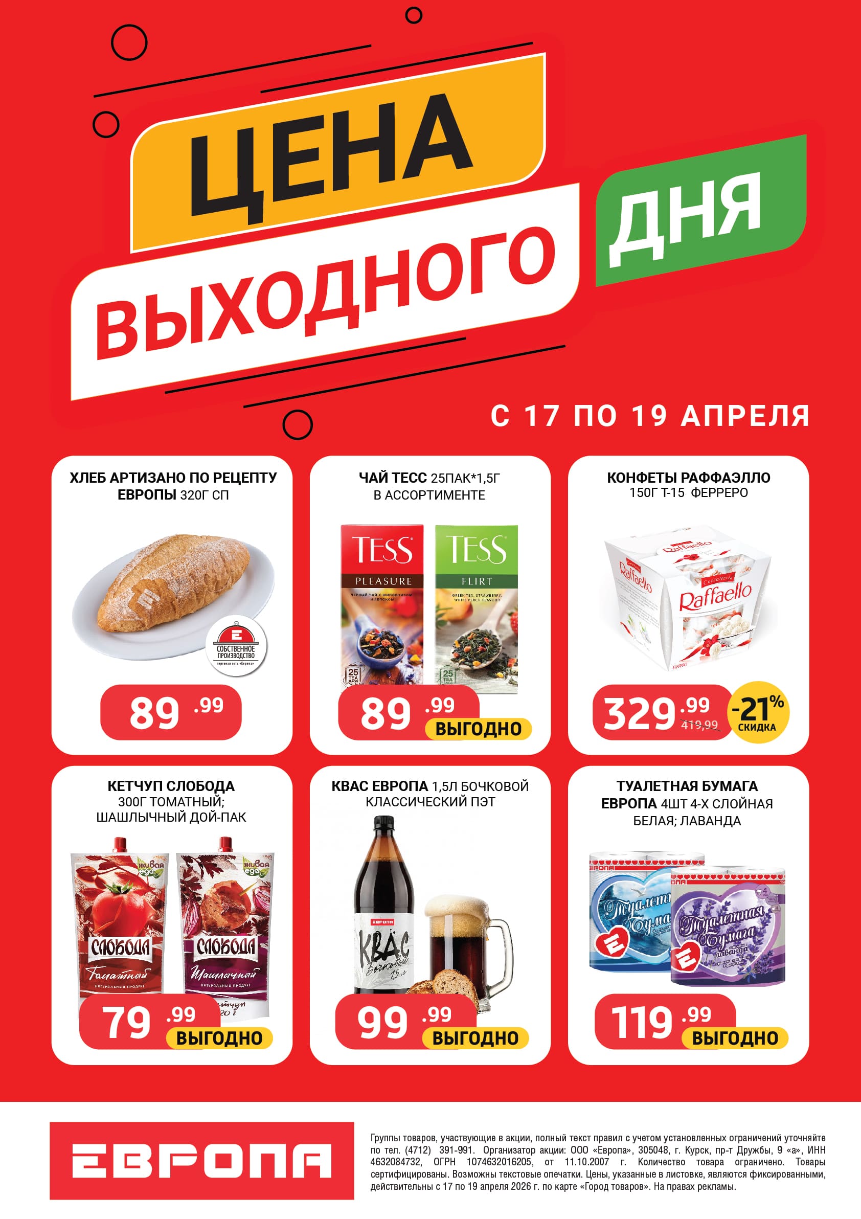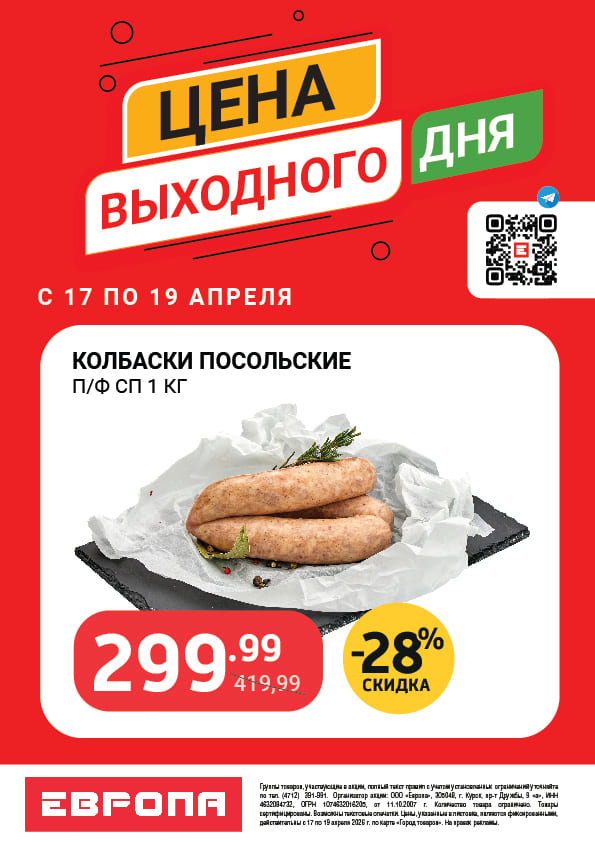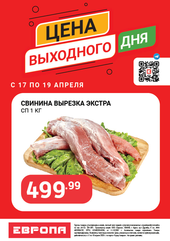 Цены выходного дня с 17 по 19 Апреля 2026г.