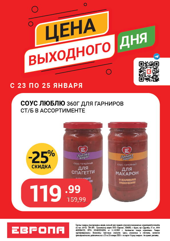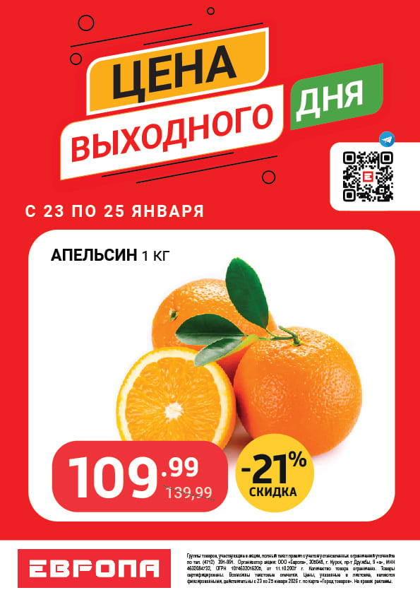 Цены выходного дня с 23 по 25 Января 2026г.