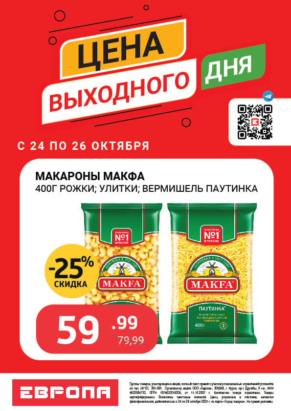 Цены выходного дня с 24 по 26 Октября 2025г